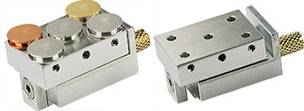 The EM-Tec PS44 is a larger version of the EM-Tec PS4 mini pin vise stub and holds 4 samples. The sample is clamped between the two mini vise clamps. The samples are held vertically with 4 small set screws. Most effective way to study cross sections or thin samples. Holder size w/o pin is Ø25.4 x 7.2mm. Standard pin. The compact EM-Tec PS44 increases productivity en reduces downtime for pumping/venting of the SEM chamber.